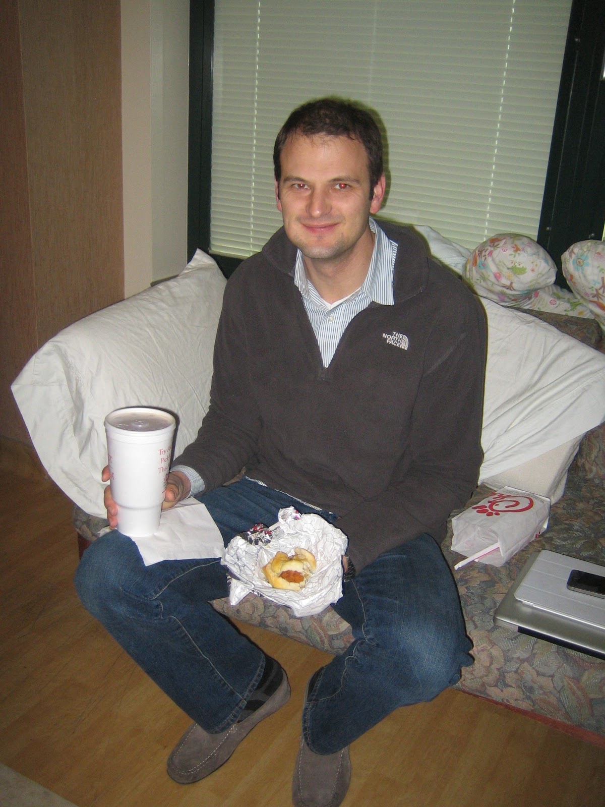 A little while later, my dad and stepmom arrived and joined me and Michael in our room. It was nice to have the company while we played the waiting game! Michael's mom also arrived at some point in there and brought him breakfast from Chick-fil-A, which made me very jealous, since I was starving!
